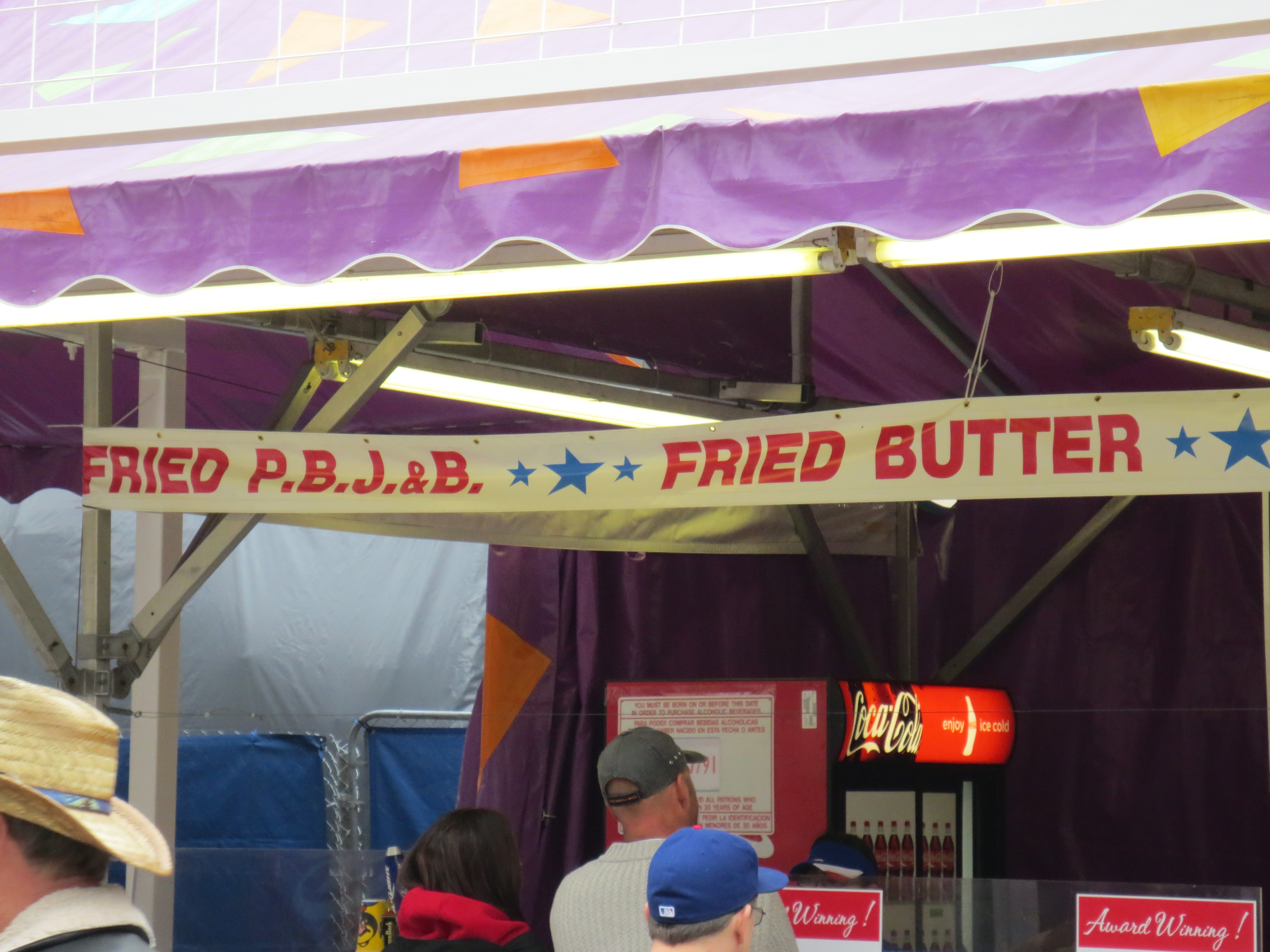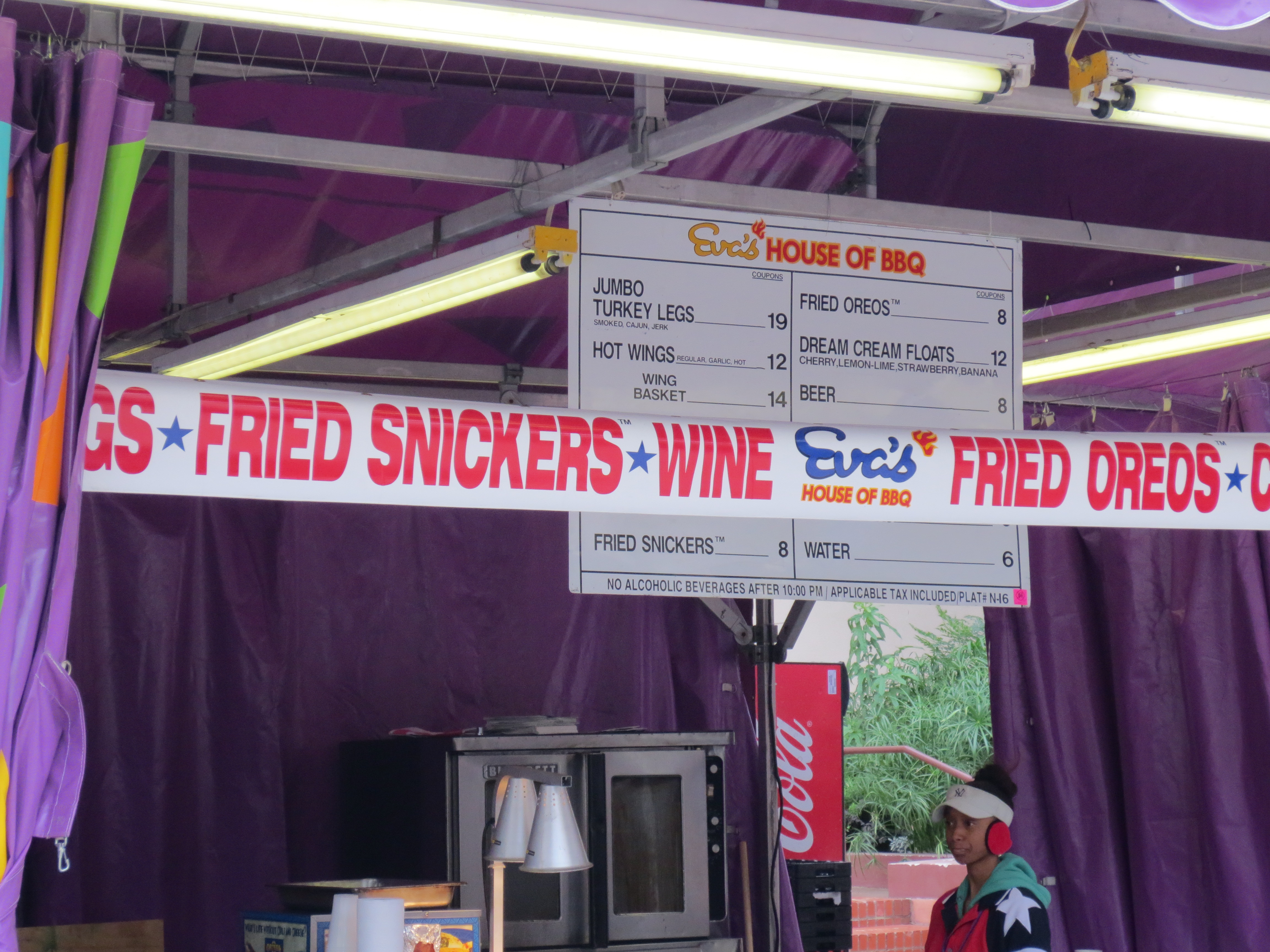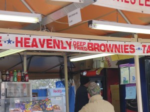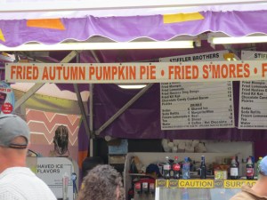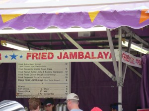 Next it was a trip down the middle of the food booths. That’s what you go to the Fair for, right? But so many choices . . .