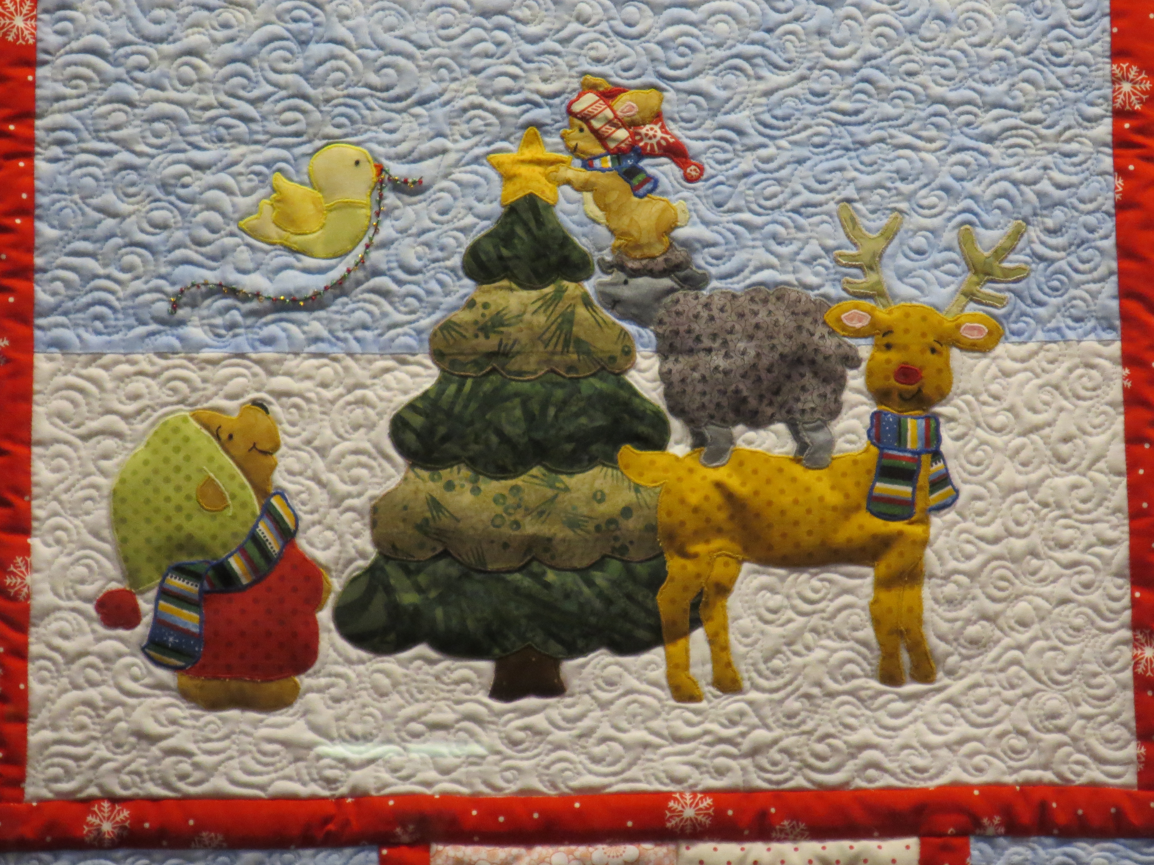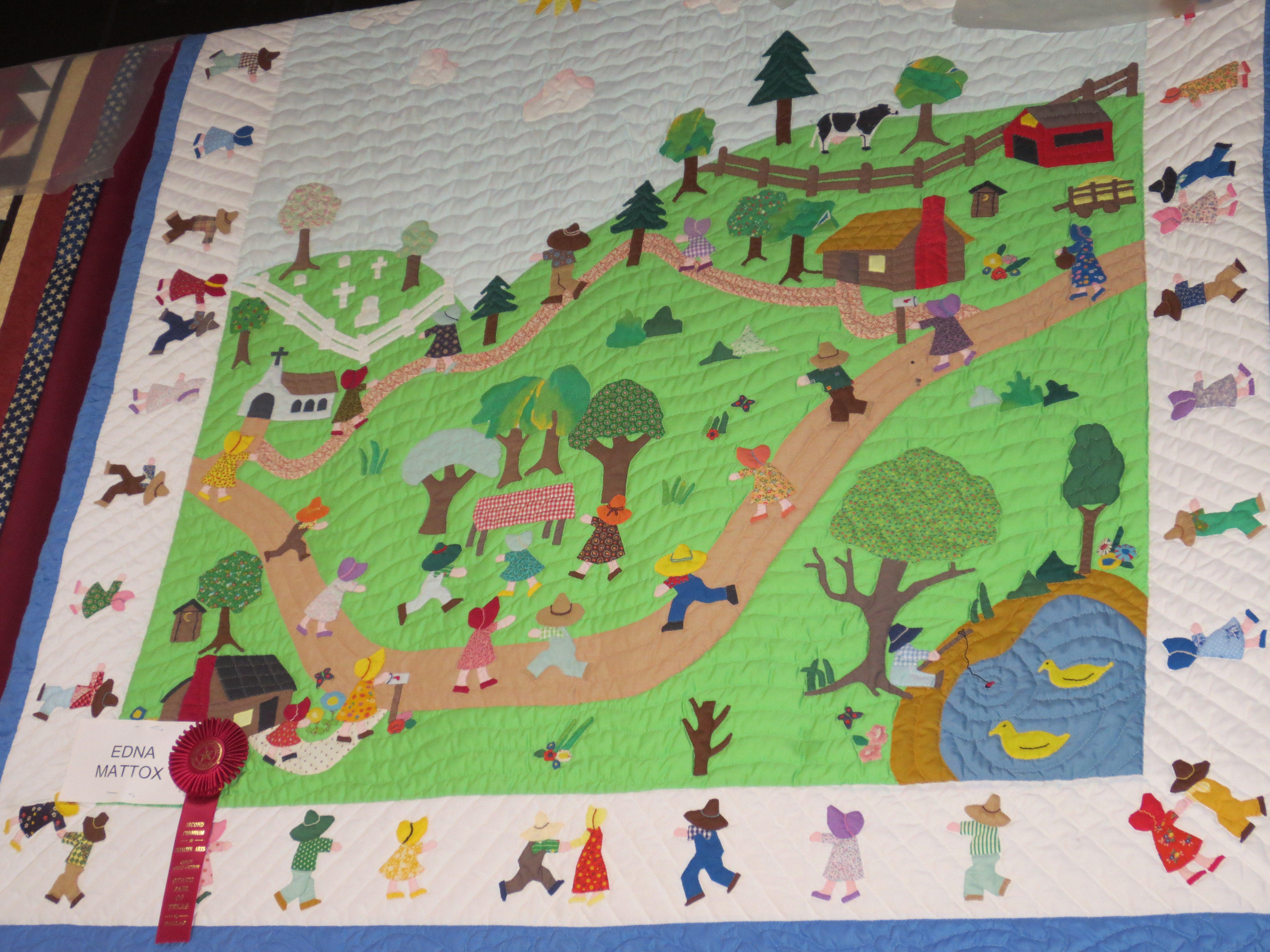 The quilts are hard to photograph because they’re up high, close to the ceiling of the building. I suspect the quilters don’t want anyone’s sticky fingers touching their beautiful handiwork. This display always blows me away. I can’t imagine the patience it takes to create these masterpieces.
