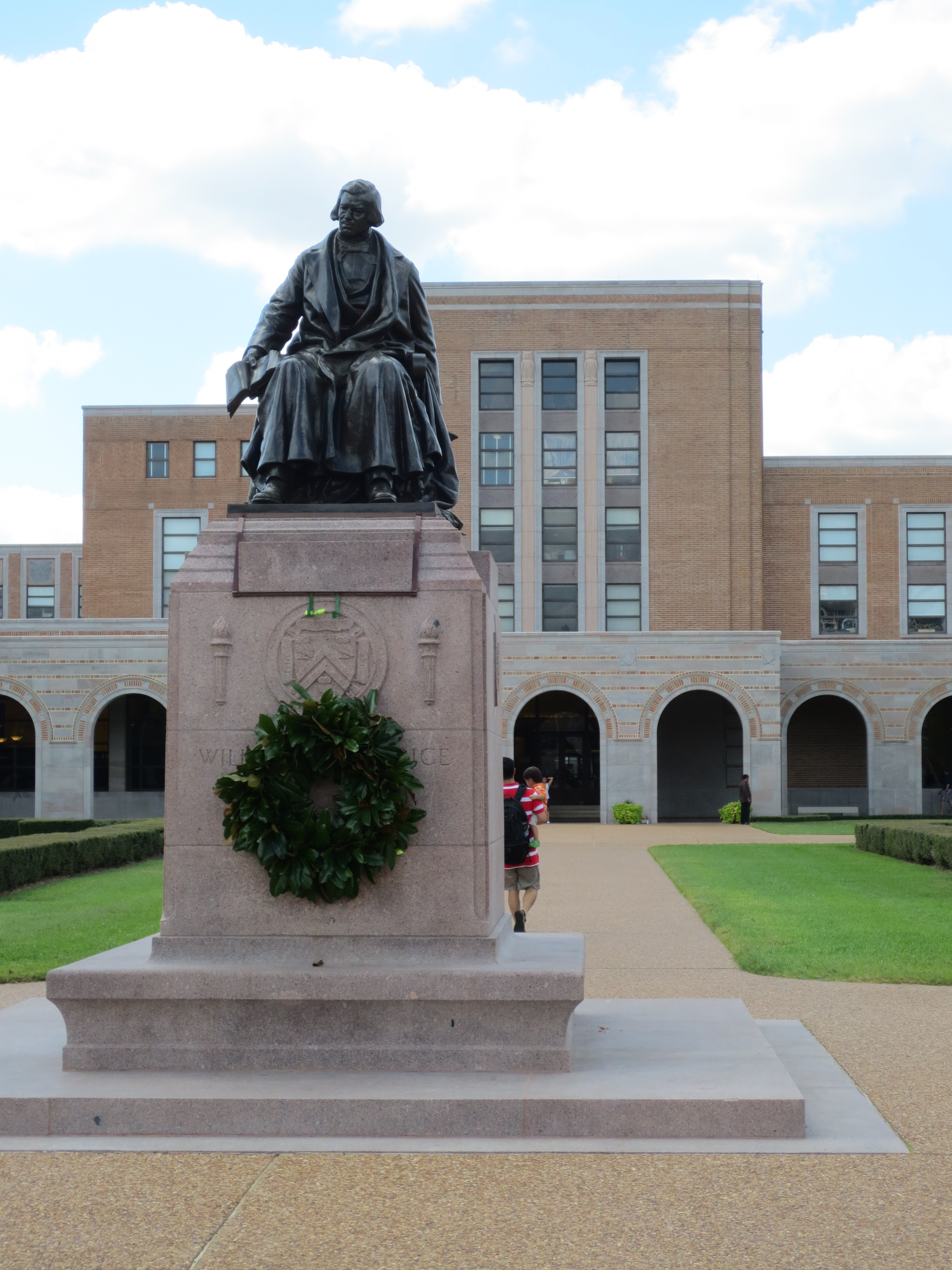 The tomb of William Marsh Rice, with Fondren Library in the background.